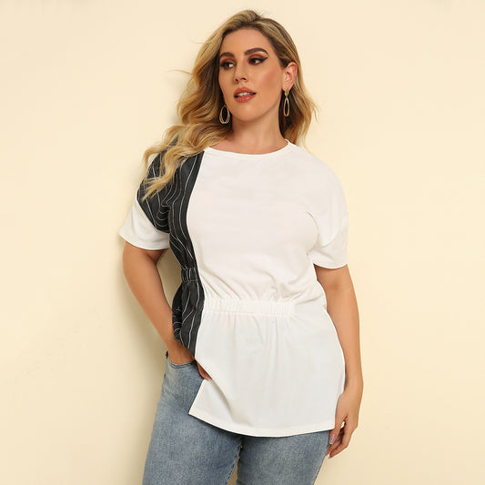 【50% OFF】【L-4XL】 2024 Nou Tricou cu mânecă scurtă lungă în dungi, lejer cu gât rotund