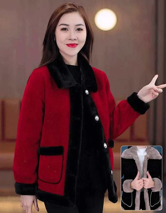 【45-105KG】☃️Jachetă nouă de lungime mijlocie în sherpa îngroșată de toamnă și iarnă