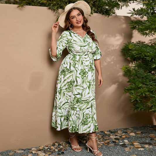 【50% OFF】【L-4XL】「Summer Flowers」Rochie de plajă cu talie imprimată 2024