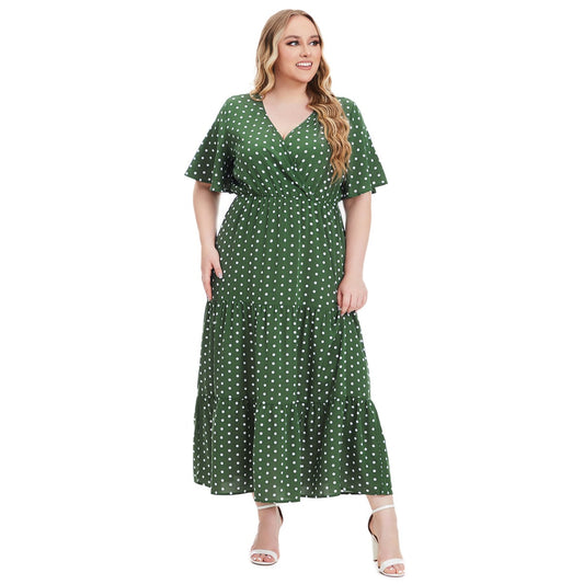 【50% OFF】【XL-5XL】「Holiday Beauty」Rochie lungă cu buline plus mărime 2024