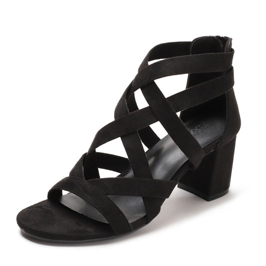【50% OFF】【36-42】「Dansator」2024 nou vară cu fermoar spate curea subțire țesute sandale cu toc gros