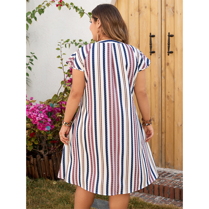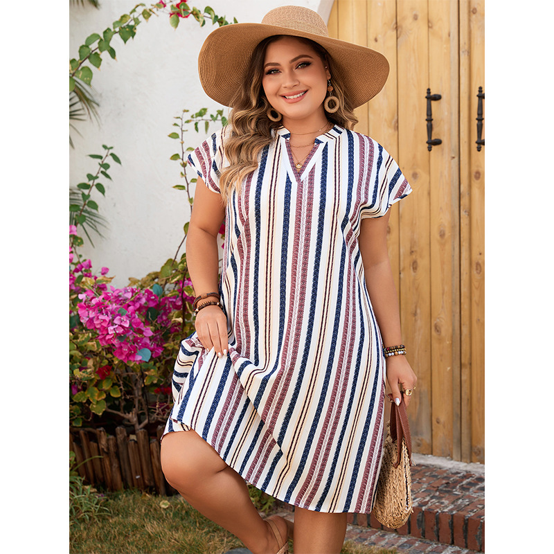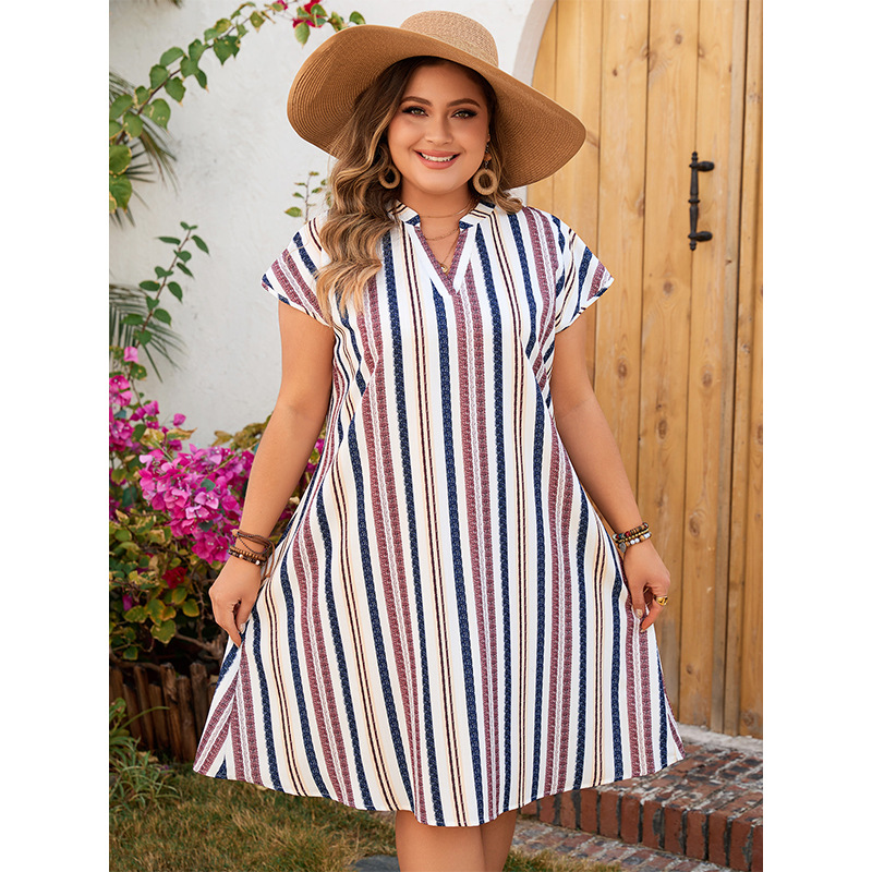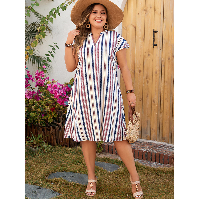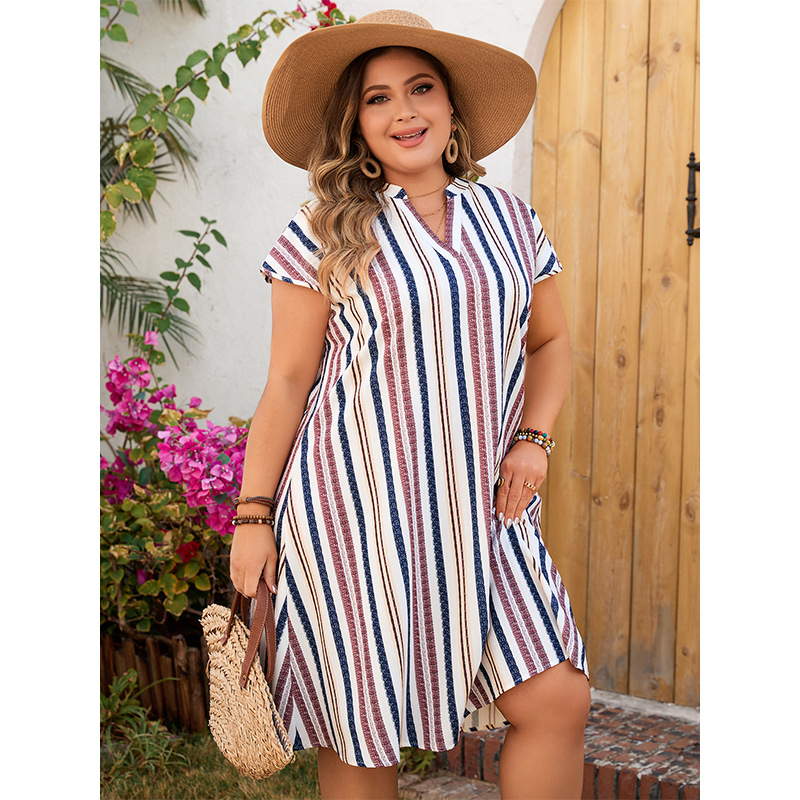 【50% OFF】【XL-4XL】2024 rochie colorată în dungi cu decolteu în V