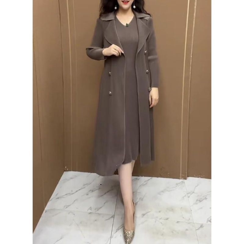 【M-4XL】Toamnă Nouă Elastic Fashion Fals Două Piese Windbreaker Rochie
